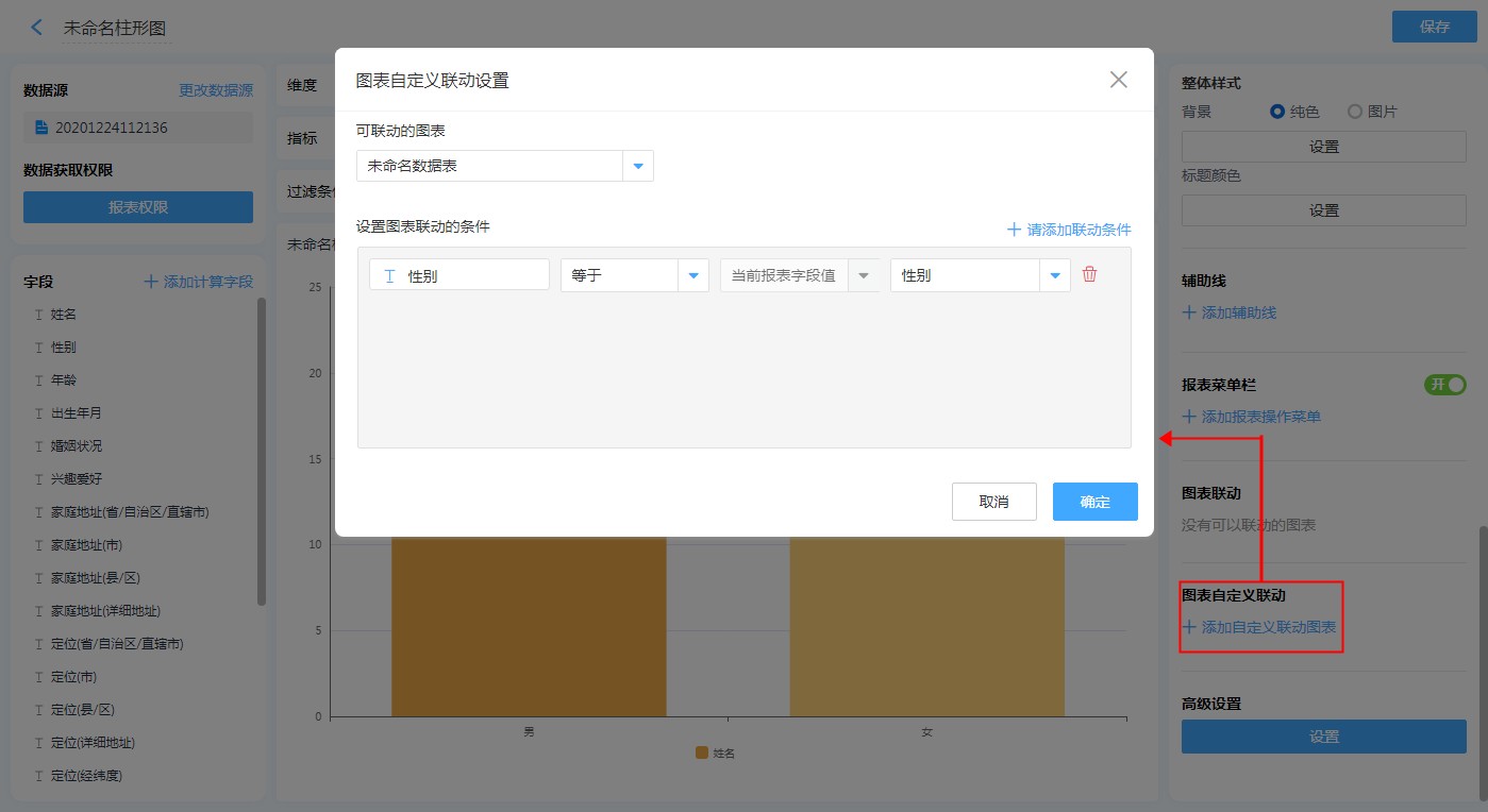 图表自定义联动条件-维度首字段