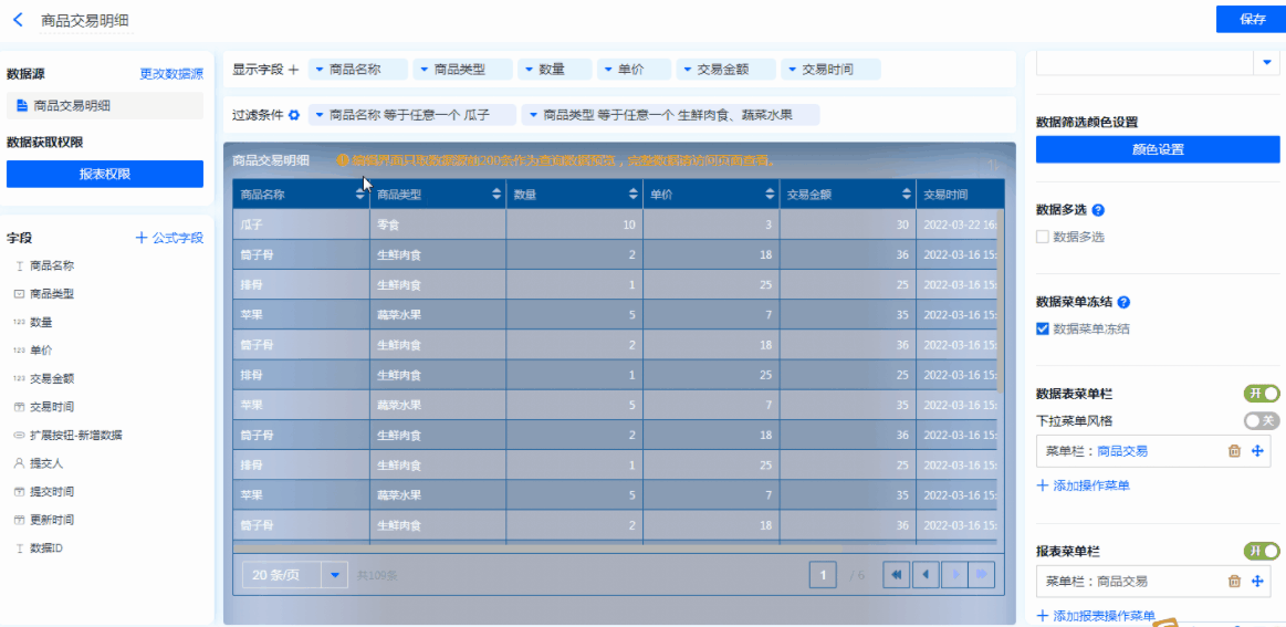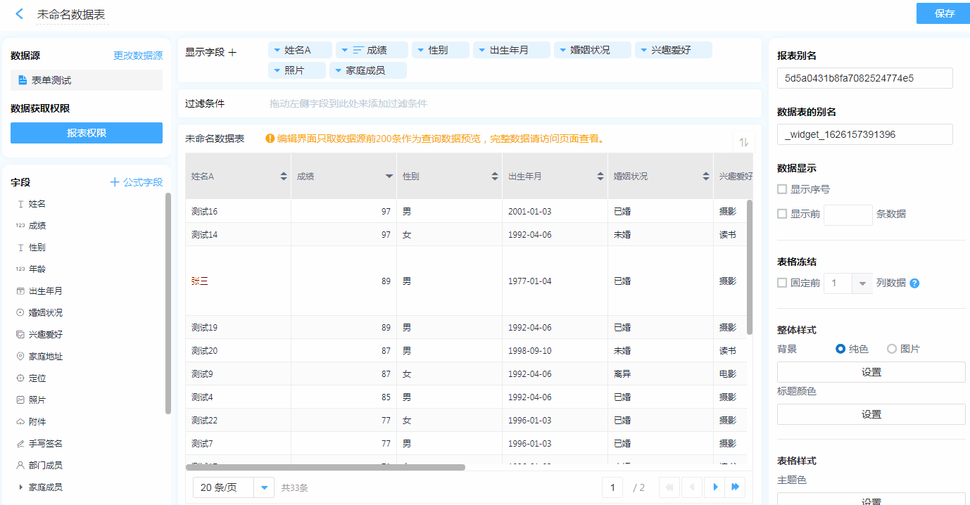 • 若没有设置过滤条件,则报表中展示所有数据。