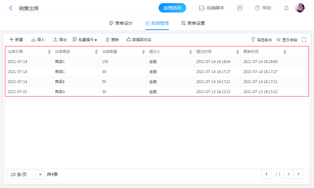 - “出库数量”求和。