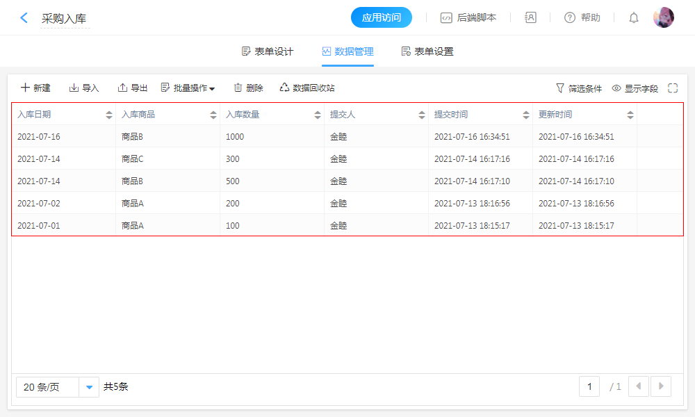 - “入库数量”求和。