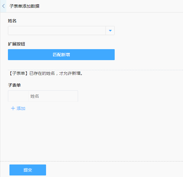新增普通字段数据到子表单内。